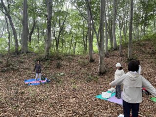 市民の森の自然の中で、ヨガ体験をします。自然の中で身も心もリフレッシュ!